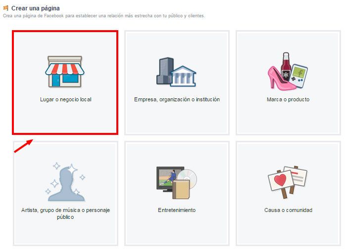 - Entra en el siguiente enlace: facebook.com/pages/create