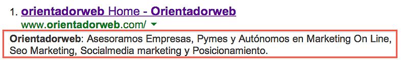 - Meta descripción: es la descripción que aparecerá en los buscadores cuando tus usuarios busquen tu página. No debe superar los 156 caracteres incluyendo espacios. Tampoco debes duplicar meta descripciones en tu web, por la misma razón que nombraba en el título: se considera contenido duplicado. Es tu oportunidad para decirle a tu lector o cliente que va a encontrar en esa página si hace clic en el buscador.