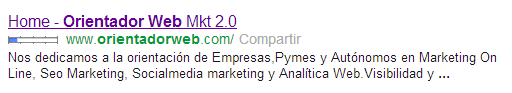 Por defecto este título suele coincidir con el contenido de la meta etiqueta «description» de la página. Una «description» bien redactada contribuye a la coherencia y relevancia de la página pero, sobre todo mejora las probabilidades de conseguir un «clic» en las páginas de resultados (SERPS) cuando nuestros resultados deben competir junto con los de otras páginas por captar la atención y el «clic» del usuario.